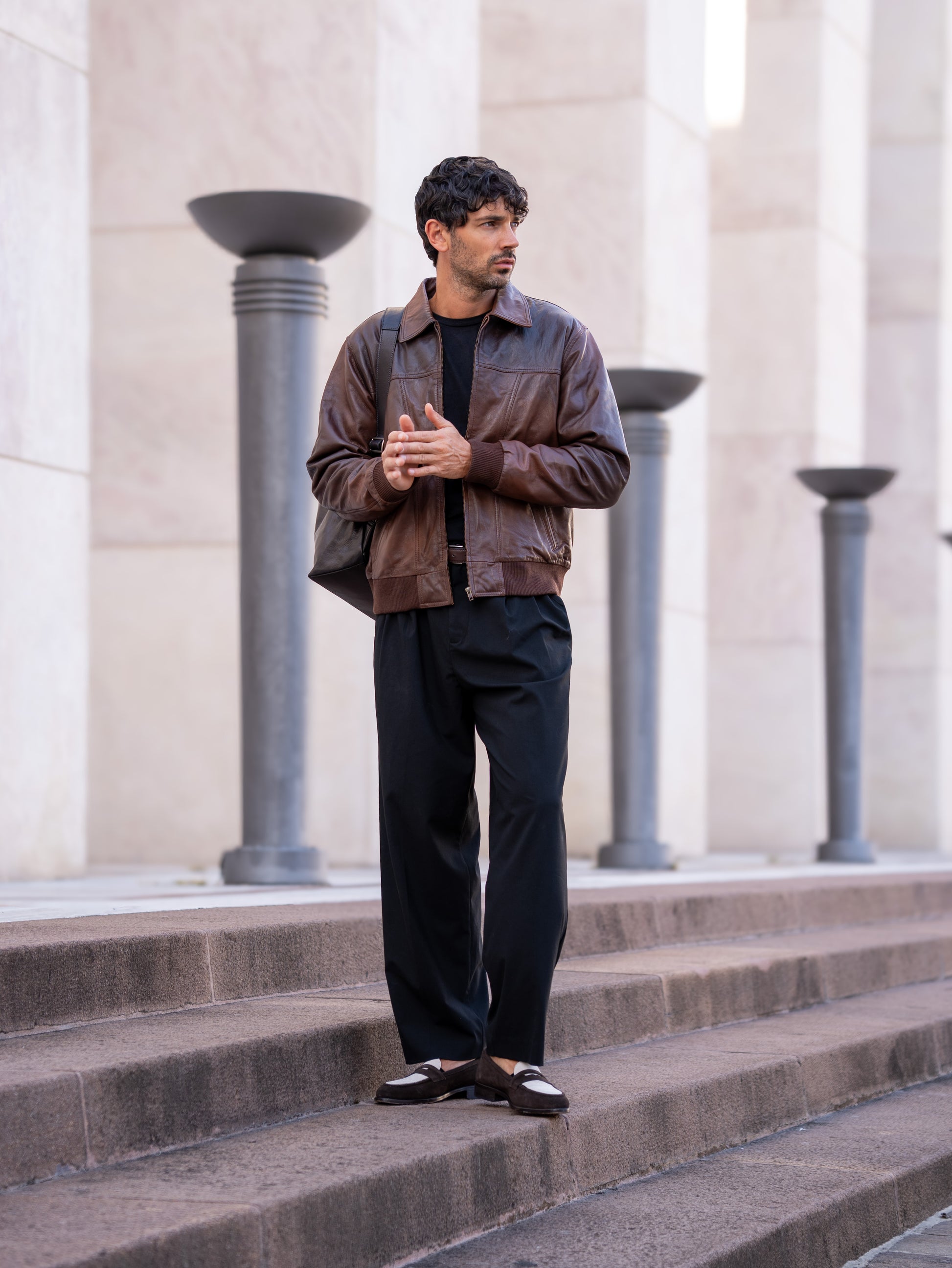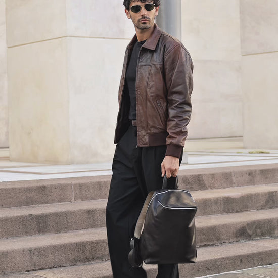 This vintage-inspired leather jacket is a timeless piece that exudes rugged style. Crafted from durable leather, it features a classic design with a zip closure, ribbed cuffs and waistband, and multiple pockets for added functionality. Perfect for layering over your favorite outfits, this jacket adds effortless cool to any look.